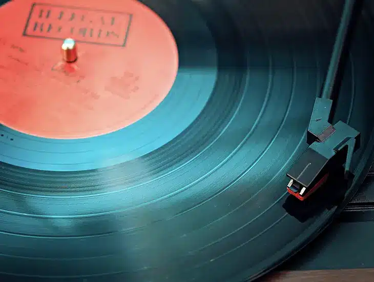 A close up of a vinyl record on a table, accompanied by a Letter from Symphonic’s CEO.
