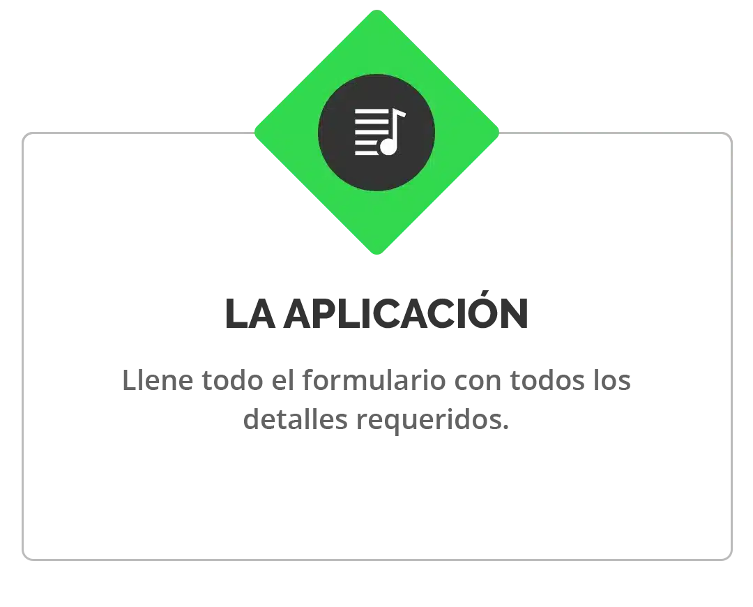 Debido a que queremos asegurarnos de poder proporcionar un servicio increible a cada sello discográfico, artista, manager y/o distribuidor que trabaja con nosotros, necesitamos un poco de información para ver si somos adecuados para trabajar contigo.
