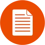 White icon of a paper document with text lines, centered on an orange circular background—perfect for representing music industry guides.